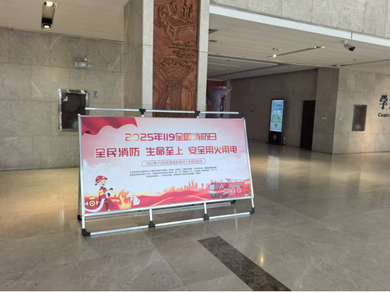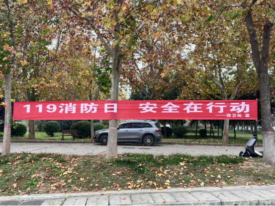 11月6日保卫处在三校区通过微信群推送消防短视频、悬挂宣传横幅、设置消防知识展板等形式,营造 “人人学消防、懂消防、守消防” 的浓厚氛围。
