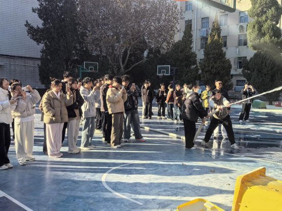 本次演练共使用了近40具灭火器,学生们认真学习并亲手操作,掌握了正确的灭火方法,同时,消防栓和消防水带的使用也得到了充分演练,学生们亲身体验了水带连接、出水操作等流程,对如何利用消防设施扑救火灾有了更直观的认识。